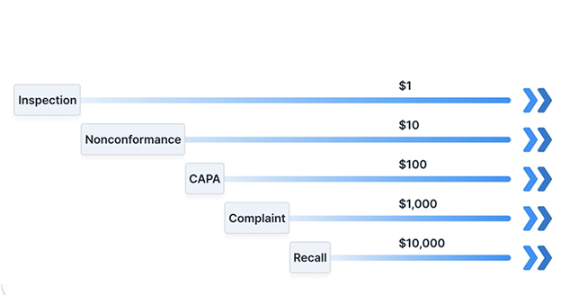 The 1-10-100 rule refers to the hidden costs of waste associated with poor quality.